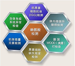 我院医生会根据每个患者的白癜风症状、工作生活环境、状态等精准判断所需检测,针对每一项病因会有不同的检测项目如:德国奥曼wood灯检查、抗黑素细胞抗体检测、微循环障碍检测、微量元素检测、黑素细胞缺失程度检测、自体免疫系统异常检查、白癜风CT检查系统。该系统通过血液中的微量元素的测试及各种血细胞、各种病理性抗体等数值的测评,从而确定患者的自身免疫系统是否紊乱,黑色素细胞遭到破坏的原因,内分泌系统及各项内环境水平是否稳定等等,通过七大项目检查可精确找出导致白癜风的一个或几个致病原因与发病机制,解决了以往白癜风万人一方的现象。我院医生会根据您白癜风的实际病因制定专属您的治疗方案,精准有效。