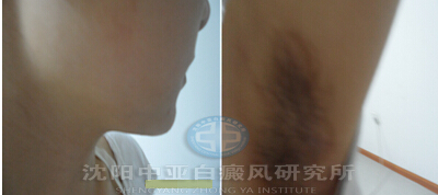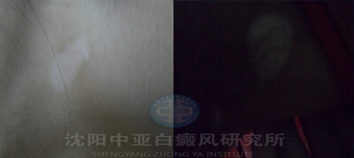 患者右侧下颚及腋下的白斑已经一年多,属于散发性白癜风,还处于进展期。由于之前属于治疗后康复,又复发,故而到我院治疗。所以还持续之前的治疗方式是没有用的。使用美国第二代准分子光疗法进行系统的治疗,再辅以食疗的方法改善患者的微循环。治疗康复后,建议患者在平时的生活中仍然要注意改善生活方式,防止复发。