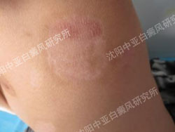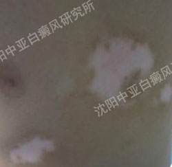 (患者综合治疗两个疗程后,白斑处照片,皮损基本消失,白斑减淡)