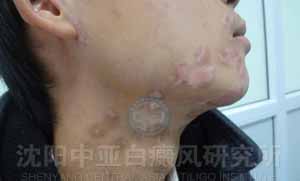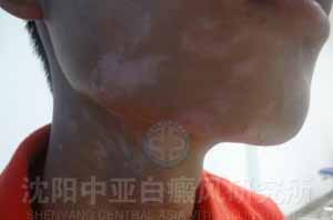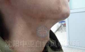 就在一个月前,小杨洗脸时发现下颚长有白斑。目前是单身的他担心白斑会影响外在形象,就赶紧去当地医院皮肤科治疗,确诊为白癜风,使用0.03%他克莫司软膏擦拭白斑,并注射了斯奇康注射液,未见好转,白斑反而扩散至颈部。
