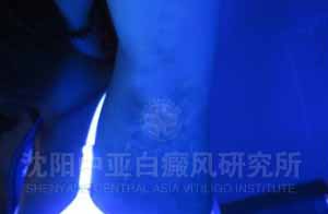 【治疗前,伍德灯下小倩腋下白斑完全脱失】