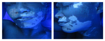 wood灯下白斑处色素完全脱失