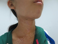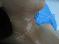 患者一年前发现颈部出现白斑,就到当地医院进行治疗,确诊为白癜风,也使用药物治疗了很长时间,白斑有所变小。但是今年8月份白斑迅速扩大。恰巧在网上看到了沈阳中亚白癜风研究所,并预约了医院的刘宏玲主任。
