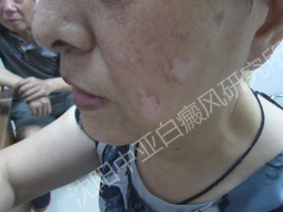 接受治疗后,白斑面积减小,边缘有明显黑色素沉淀