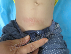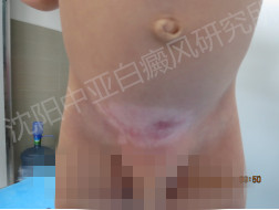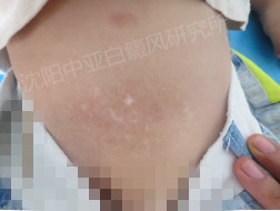 ▲病 史:腹部发现白斑半年多,在区医院治疗采用外擦药治疗(药名不详),今来我院治疗。