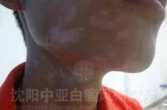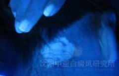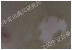 2年前始发左上腹小点状白斑,后逐渐增大成片状,并发展至同侧胸